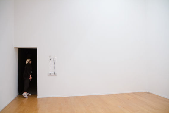 Elle prend forme dans une petite pièce obscure et feutrée de 3,5x3,5m et de 2,50m sous plafond, dans la continuité d'un grand espace blanc presque vide.